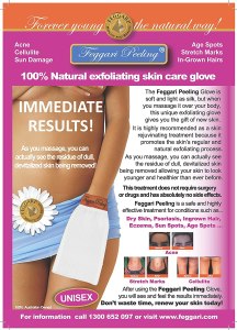 I recommend this nifty little mit “Magic Peeling Glove” to slough away dead skin cells and also get rid of any pesky left-over tan :